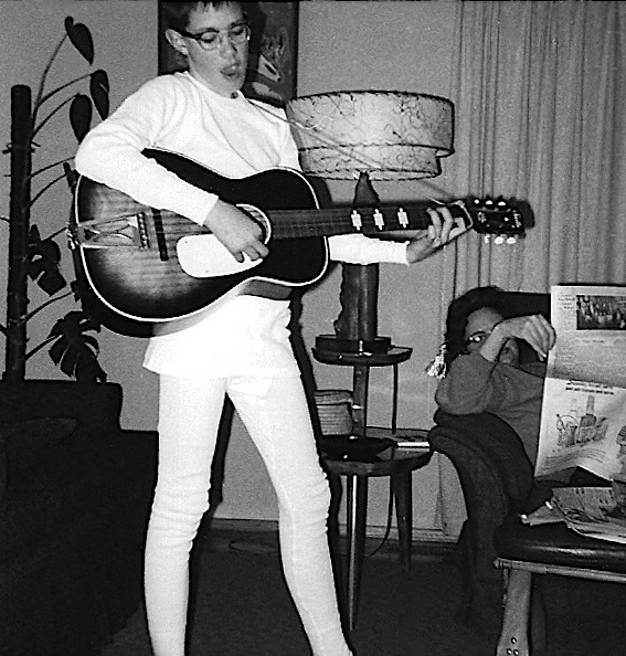 Louise noticed how much Mark loved to sing and dance at an early age, so she began nourishing his passion when he was quite young and the family was living in Germany, where his Army dad was stationed.  Piano lessons in Mark’s early years were the first attempt to make him a musician.  However, that didn’t take. Nor did clarinet in 5th grade, when his family had moved to Lacey, WA.  However, for Christmas the next year, just after Mark turned 10 years old, his mom rented him a $25 guitar and started him on weekly lessons. Shazam!!!  This sparked an interest that would last a lifetime.