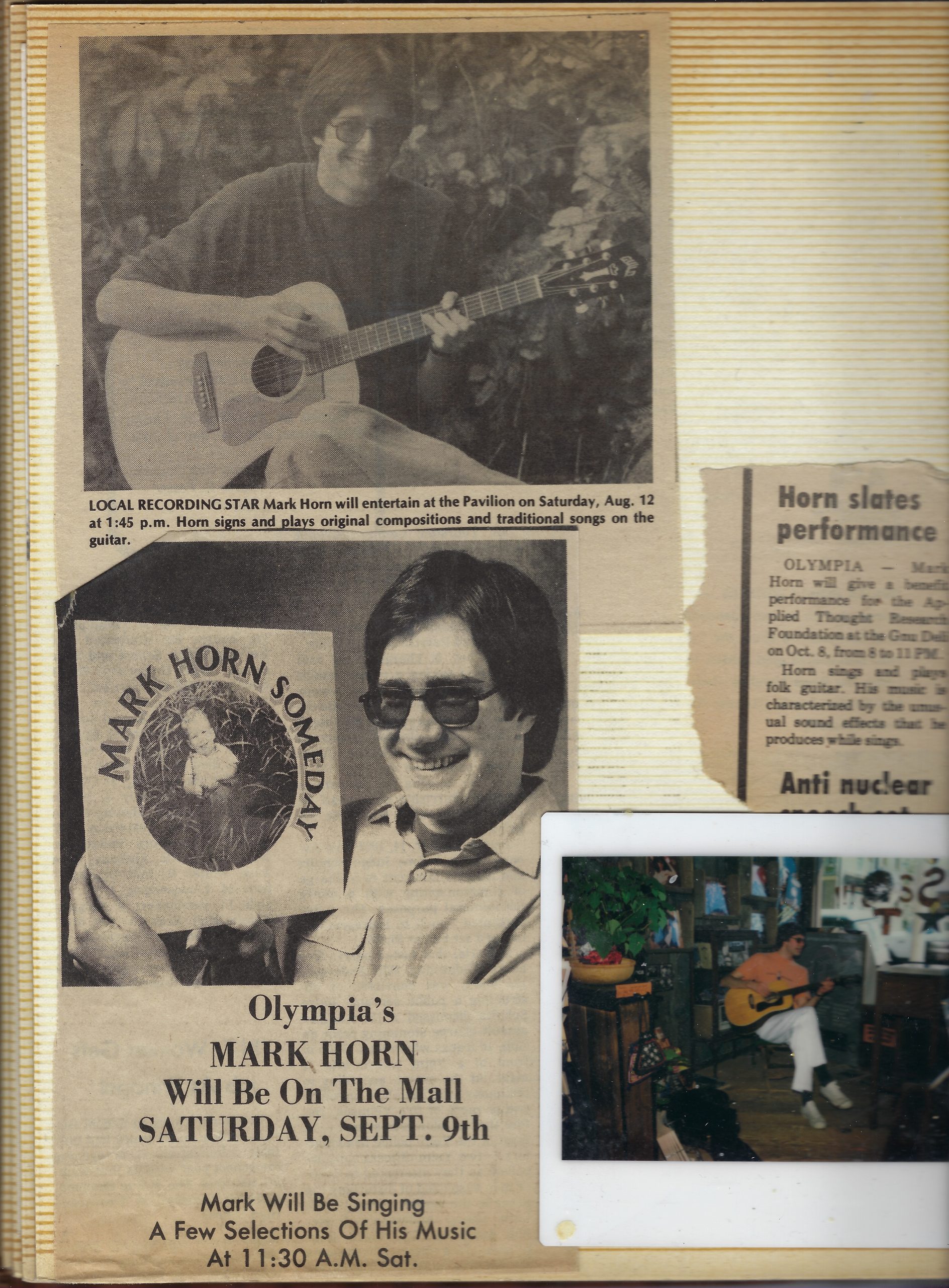 After graduating from North Thurston HS in 1971 with practically no distinctions  – other than being the only one in the school who could dunk a basketball, and being voted Class Clown as a senior – Mark began a rather unremarkable 3 years of college, toggling between Tacoma Community College and Western Washington State College (now called Western Washington University).  Aside from performing popular songs of the day at college coffee houses, higher education had little to offer this fledgling musician.  Longing for a greater purpose in life, and feeling like he was wasting his parents’ money at college, the young Mr. Horn left school in 1974 and decided to enlist in the U.S. Army.  He dreamed of saving up enough money to buy some decent recording equipment.  However, the Army rejected him, due to his prior history of having an ulcer.